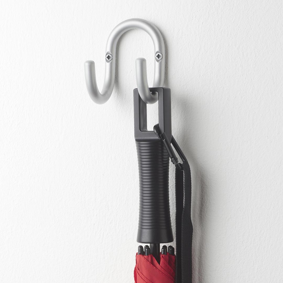 Komfortable Automatik-Funktion zum schnellen Öffnen, Windproof-Features für höhere Gestell-Flexibilität und bessere Windsicherheit, matt-schwarzer gerader Kunststoffgriff mit Werbeanbringungsmöglichkeit, schwarzer Tragegurt mit Karabinerhaken zum Umhängen, höherer Korrosionsschutz durch schwarze Galvanisierung des Stahlstocks.